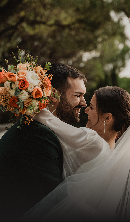María y Mariano se conocieron hace ocho años en una terraza de Zaragoza durante una noche de verano. Lo que comenzó como una conversación casual se convirtió en horas de risas compartidas y descubrimiento mutuo. Desde ese momento supieron que habían encontrado algo especial. Años después, durante un fin de semana en el Pirineo, Mariano le pidió matrimonio en lo alto de una montaña, con las vistas más impresionantes como testigo. Para su gran día eligieron Finca El Bosque, un lugar que combina elegancia natural con la calidez que define su historia de amor.